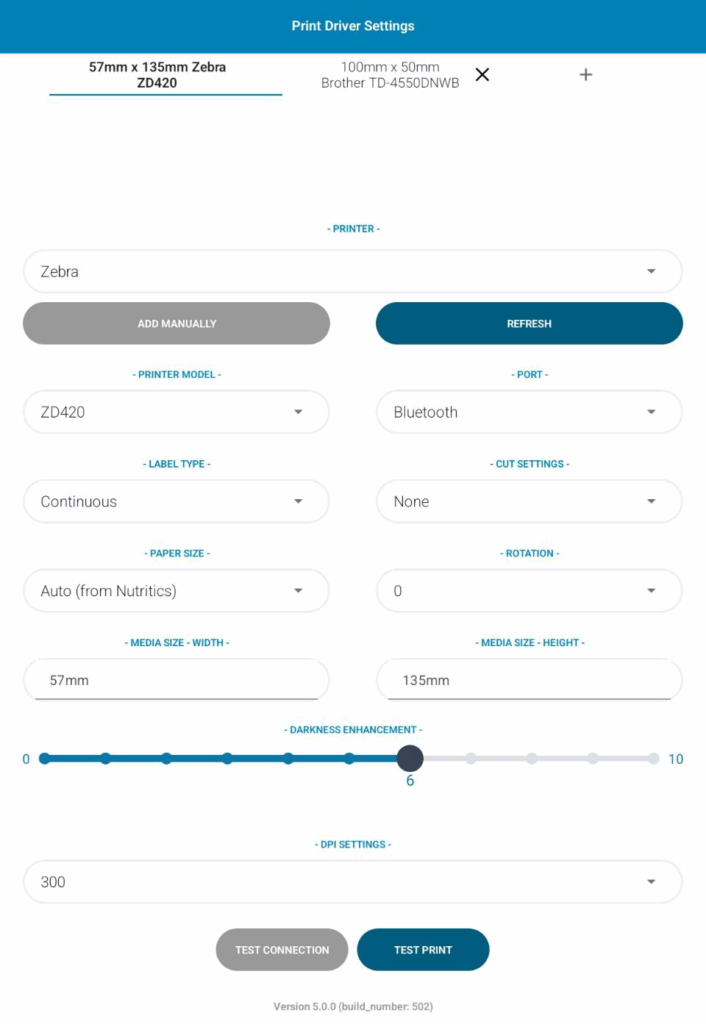 - Auto – the print driver matches the label size that is sent from Nutritics